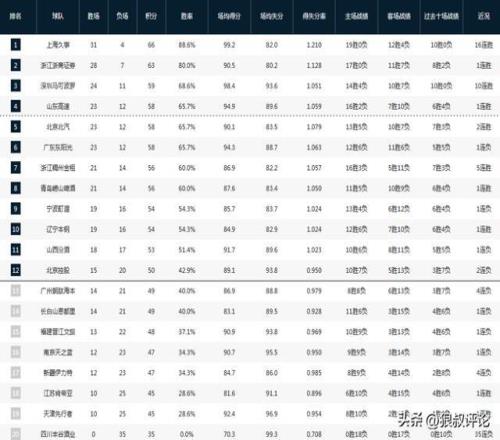 CBA最新排名:广东又输卡位战北京锁定季后赛深圳10连胜战绩狂飙