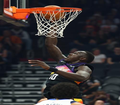 本场比赛,太阳新秀马卢阿奇表现出色,篮板球十分积极并且护筐也不错,还有大帽老队友弗拉格的精彩画面,首发出战30分钟,投篮5中2,三分球1中0,拿到4分14篮板3盖帽,正负值+11。