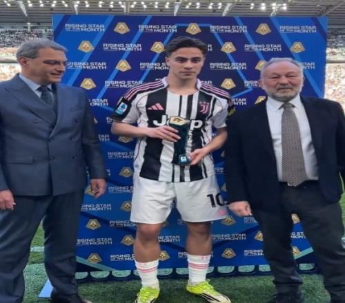 体育播报4月7日宣 尤文在本轮意甲对阵热那亚,前锋伊尔迪兹在赛前领取了意甲3月最佳年轻球员奖杯。